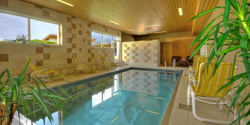 Egal ob Winter, oder Sommer - Unser Hallenbad bietet Ihnen angenehme Entspannung nach Ausflügen oder sportlichen Aktivitäten. Es liegt im Erdgeschoß, ist dadurch angenehm hell und der Sonnhofgarten ist mit dem Schwimmbad direkt verbunden.